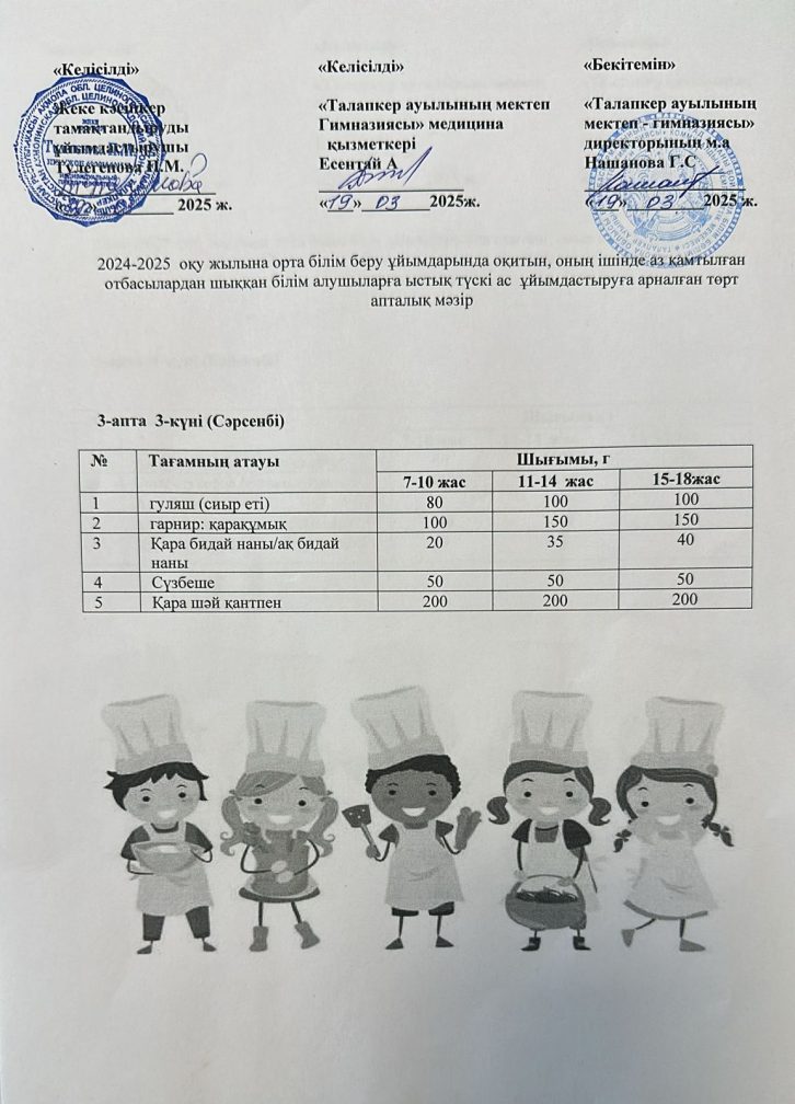 Мектеп асханасының ас мәзірі 19.03.2025