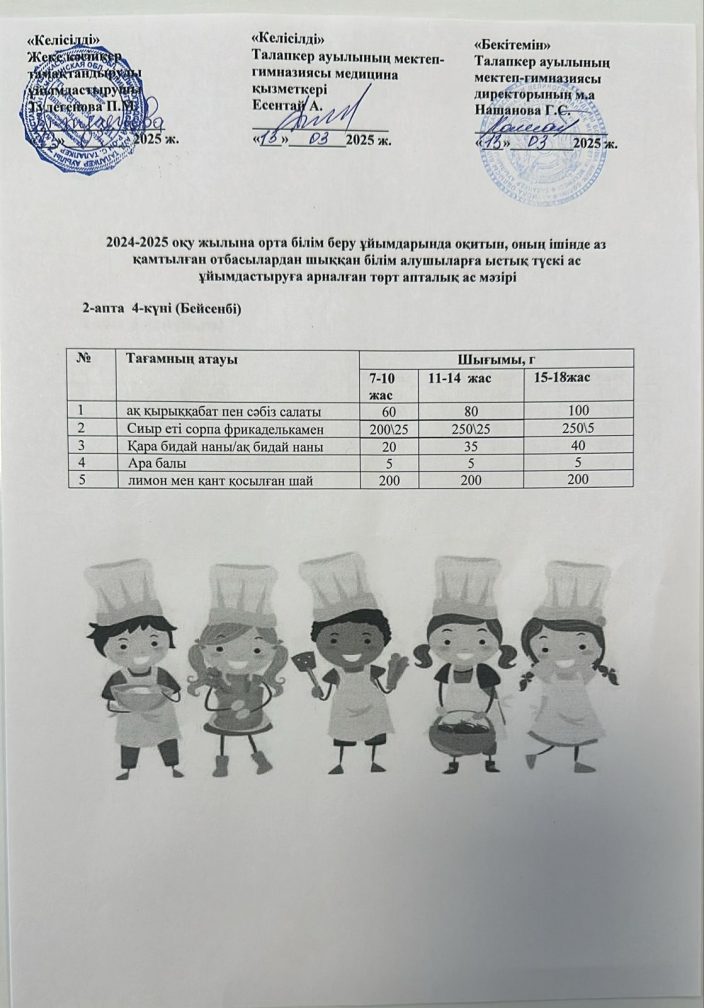 Мектеп асханасының ас мәзірі 13.03.2025