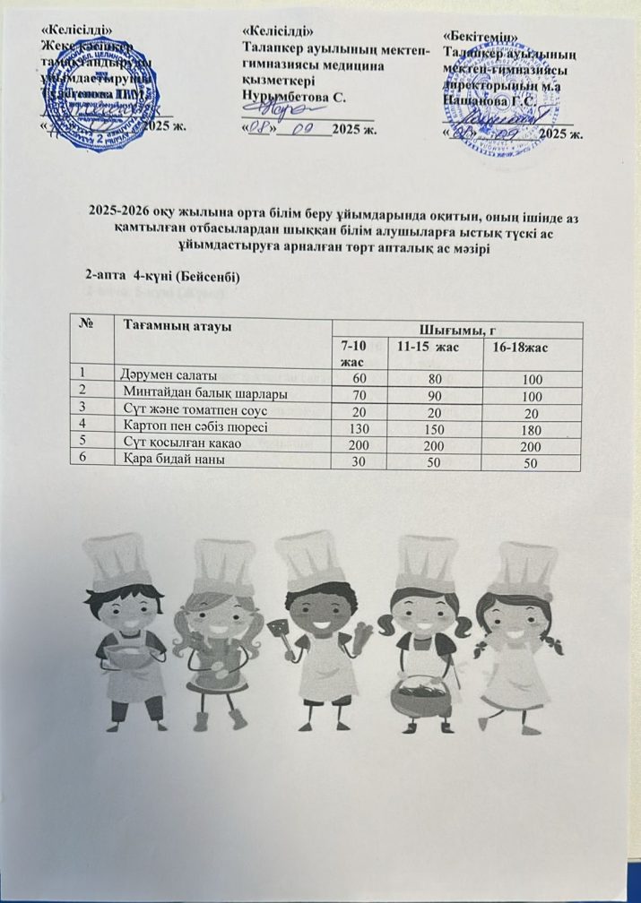 Мектеп асханасының ас мәзірі 11.09.2025