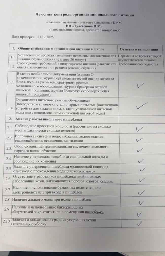 Тамақтану сапасына мониторниг жүргізу 23.12.2025