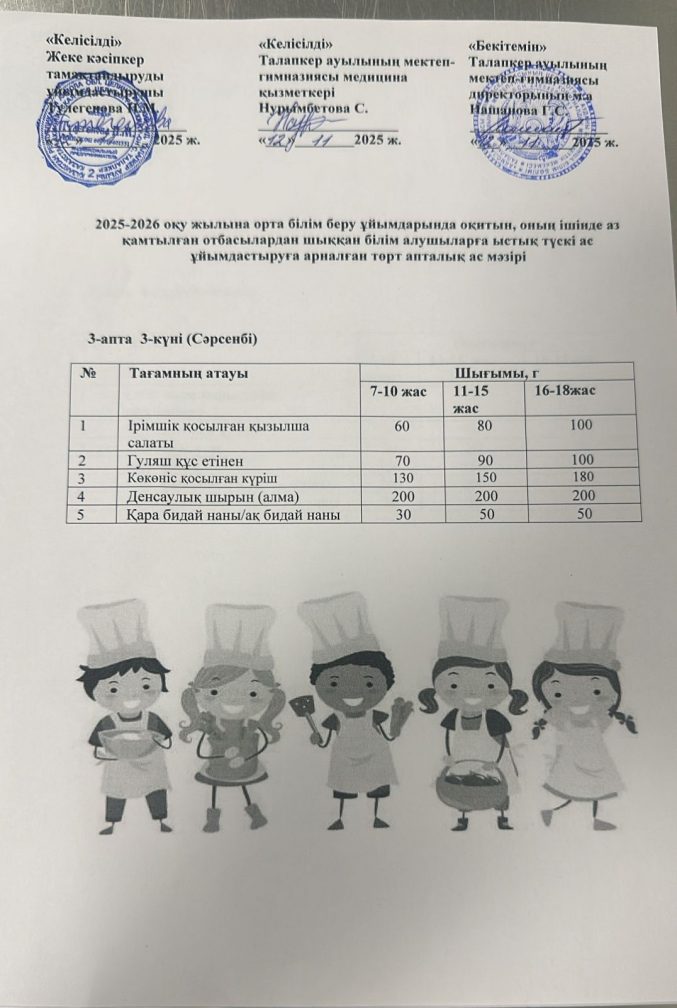 Мектеп асханасының ас мәзірі 12.11.2025