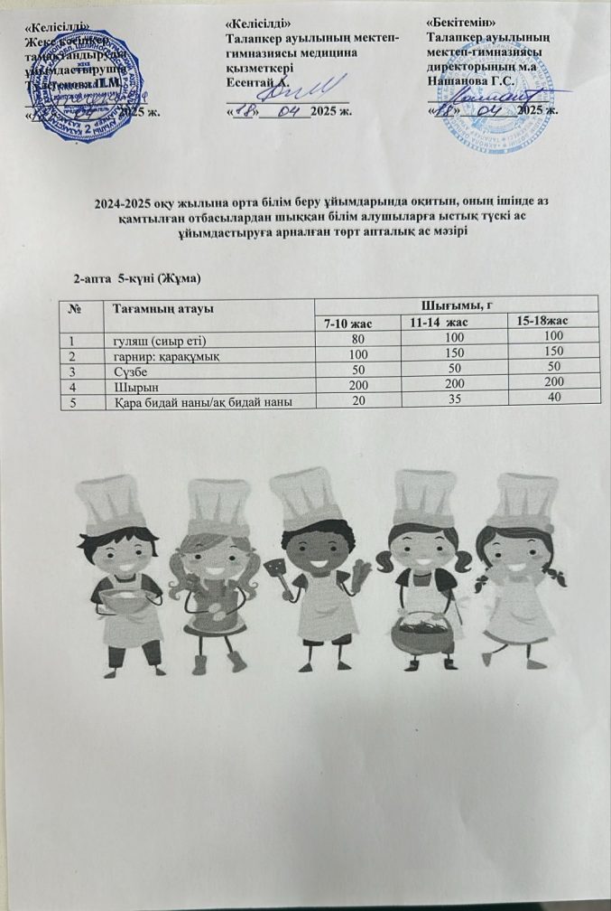Мектеп асханасының ас мәзірі 18.04.2025