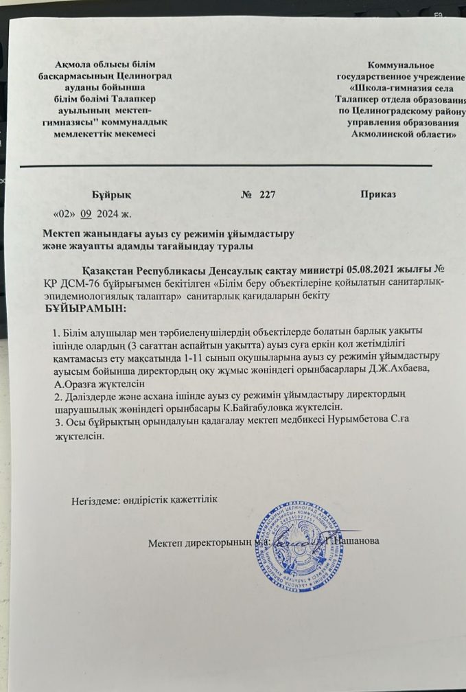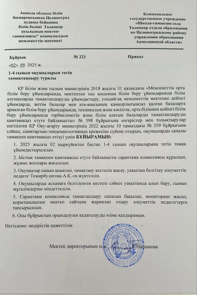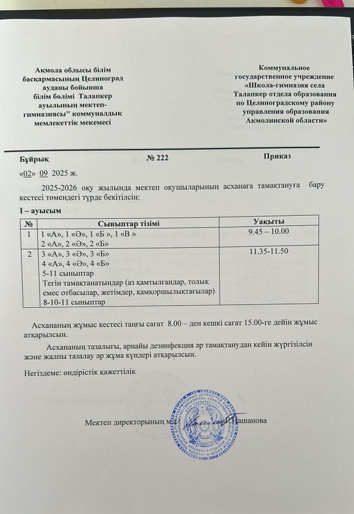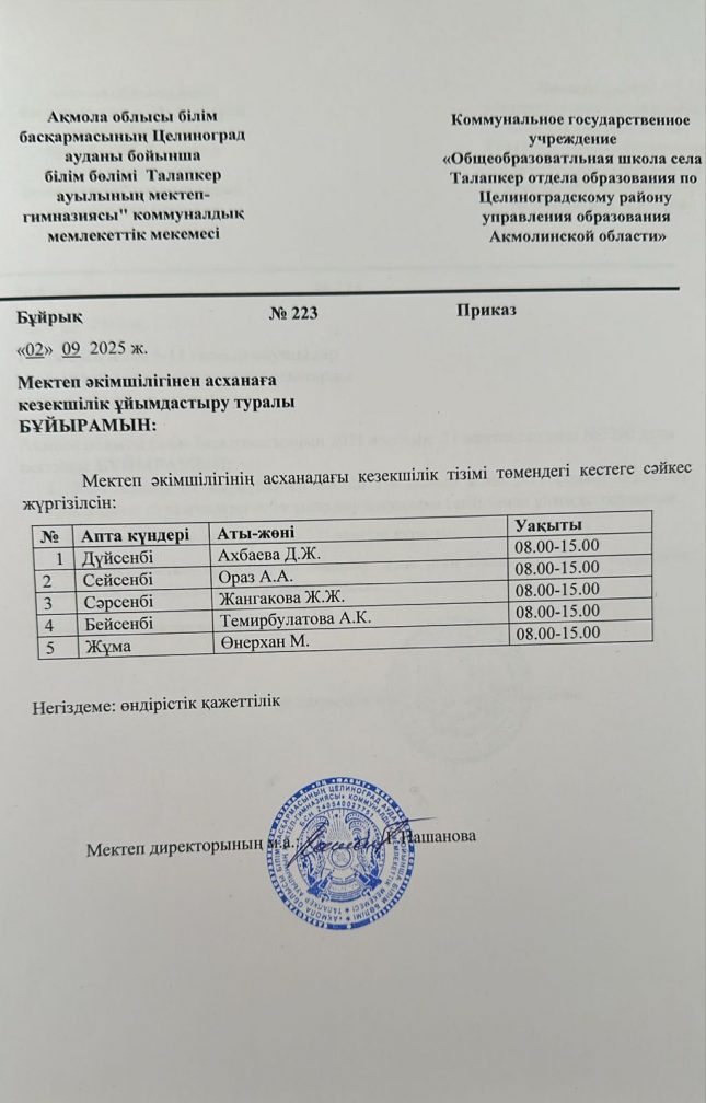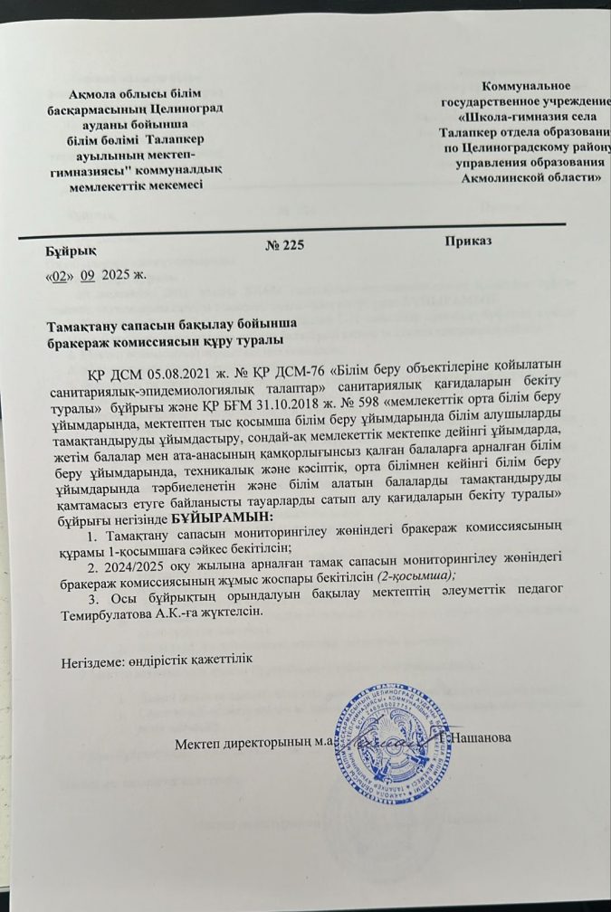 КГУ «Школа-гимназия села Талапкер отдела образования по Целиноградскому району управления образования Акмолинской области»
